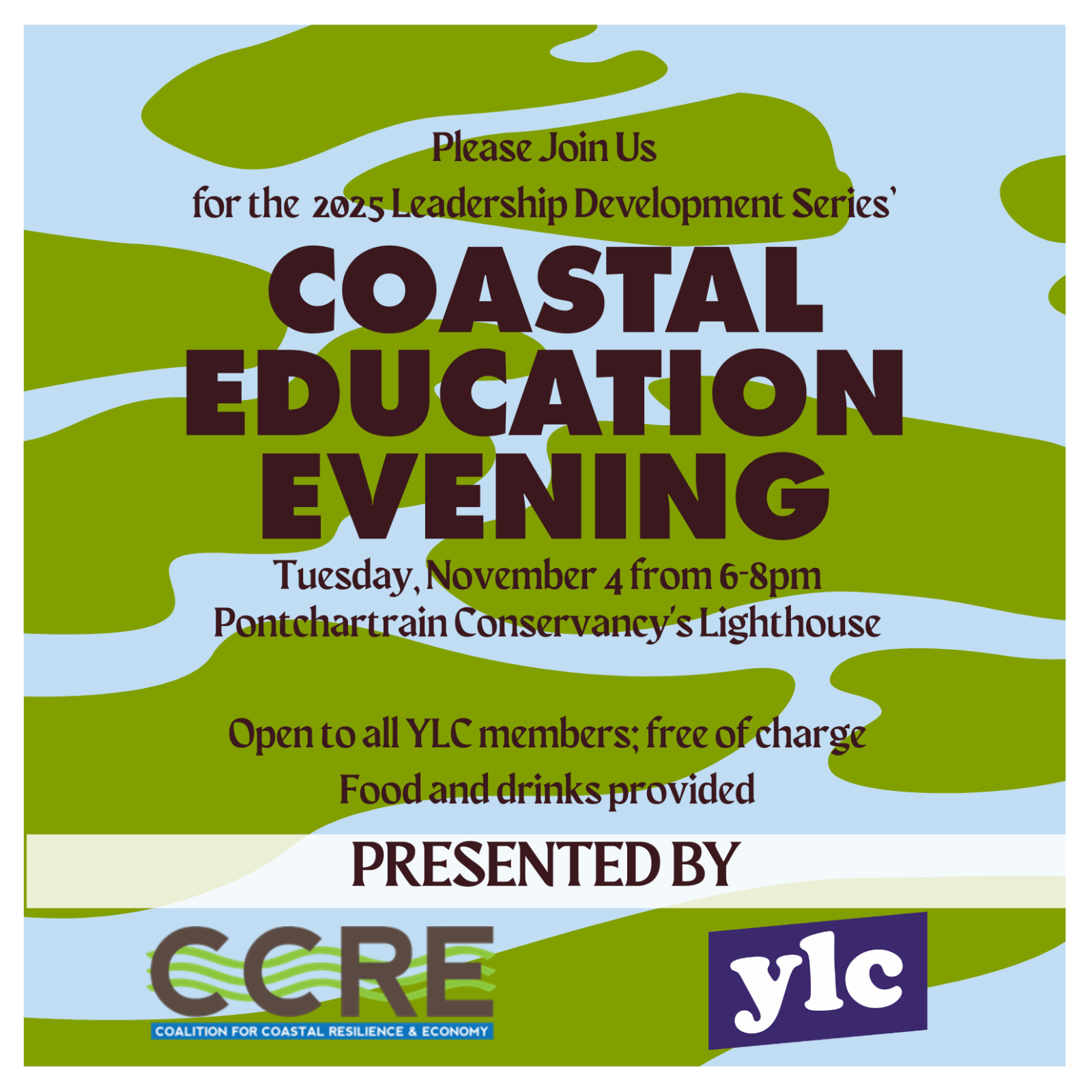 Join us for a Coastal Education Evening, co-sponsored by YLC's Leadership Development Series and GNO, Inc.'s CCRE.